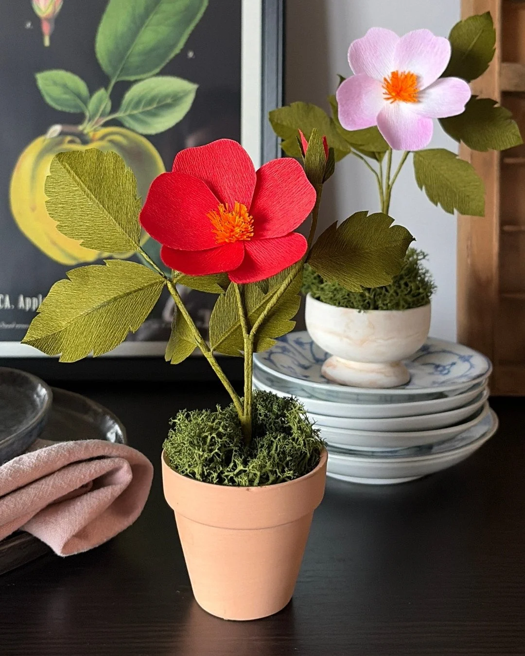 Gestalte deine eigene zarte Wildrose aus Floristen-Krepppapier und nimm sie direkt mit nach Hause.