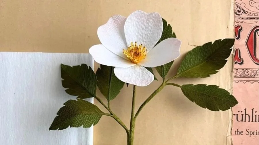 Die Wildrose, auch als Heckenrose bekannt, ist eine einfache, aber wunderschöne Blütenform, die sich hervorragend für den Einstieg in das Krepppapier-Blumen basteln eignet.