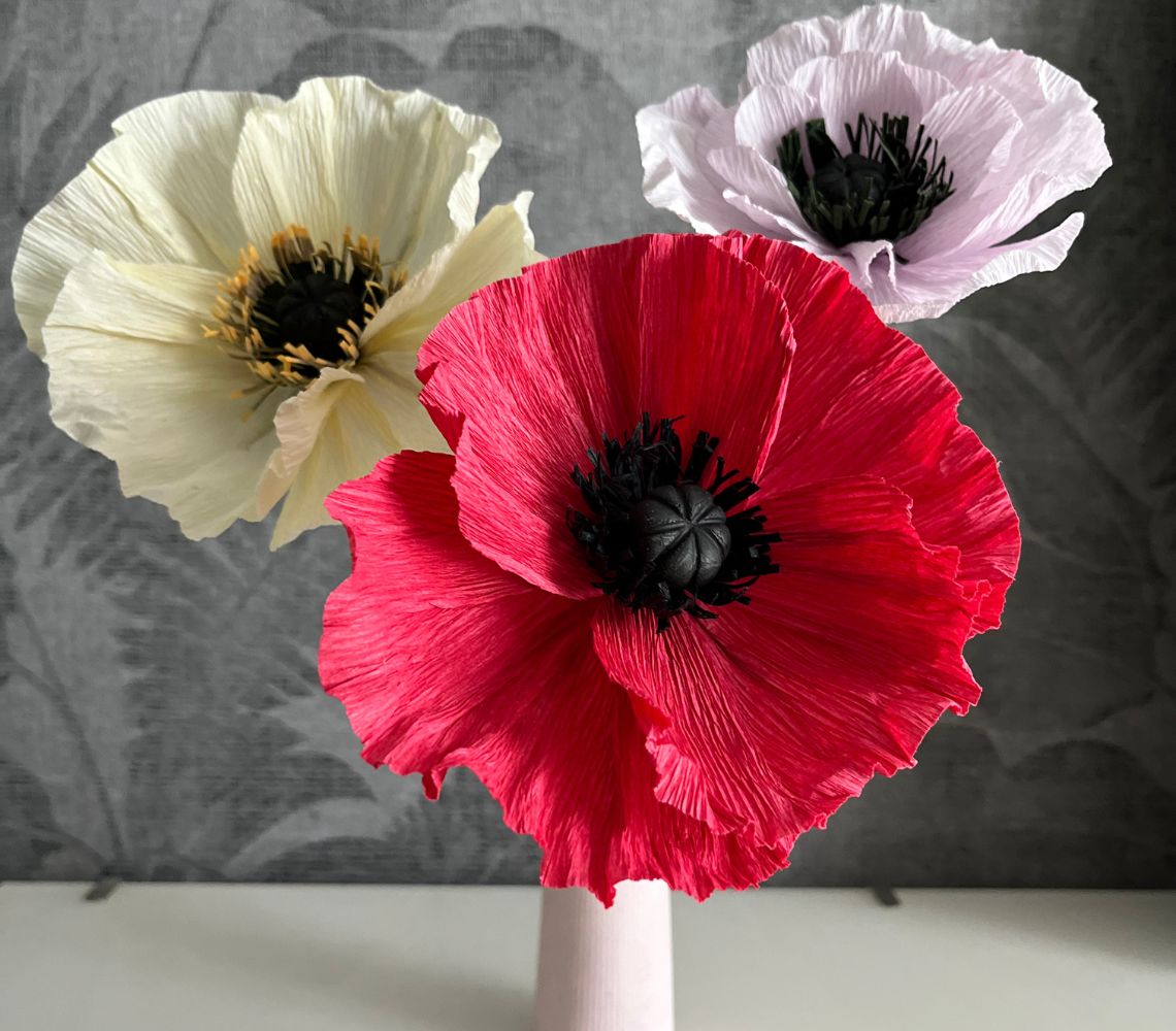 Ich lade dich ein, zusammen mit mir wunderschöne Mohnblumen aus Krepppapier zu gestalten – ideal als besonderes Geschenk oder einfach, um gemeinsam kreativ zu sein!